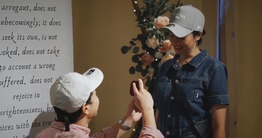 徐鸣杰以参加朋友孩子周岁生日派对为借口,成功把陈凤玲“骗”到求婚地点。