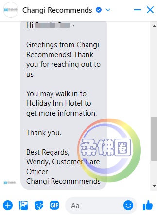 事后《柔佛圈》也经由面子书询问changi recommends,有关招聘事项,对方仅回应可直接到假日酒店了解更多详情。