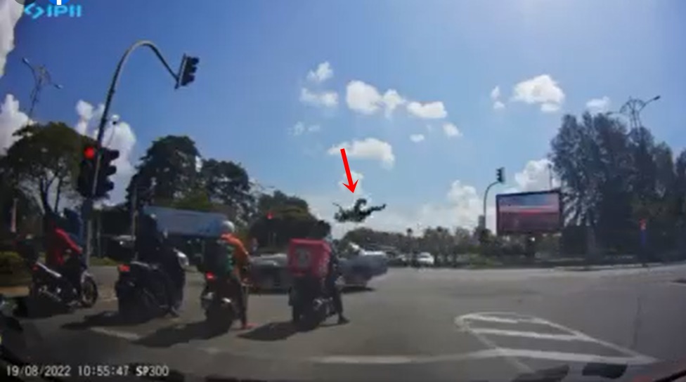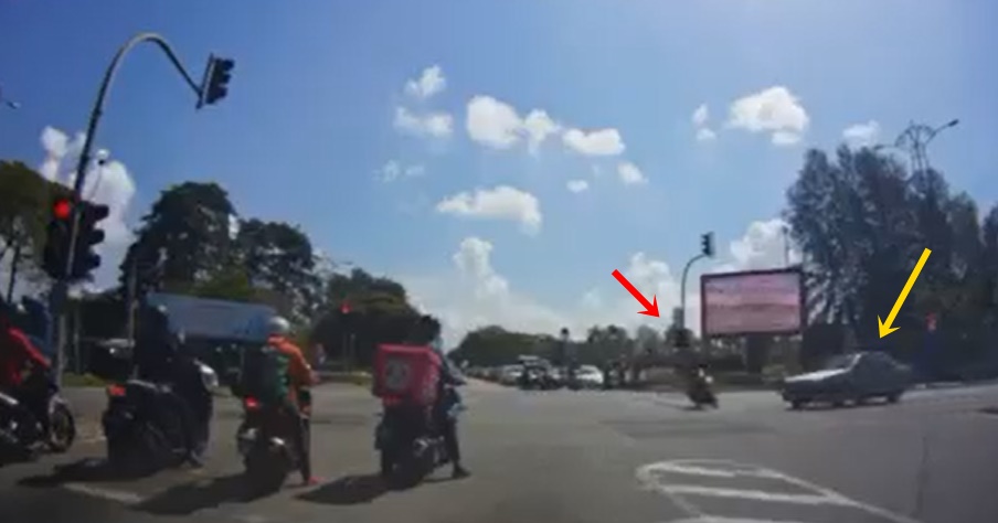 由于同样在等红绿灯的摩哆和轿车,仅有该名骑士先行前驶,因此被怀疑闯红灯。视频中可见撞击力相当大,被轿车撞后,骑士整个人抛飞到半空。