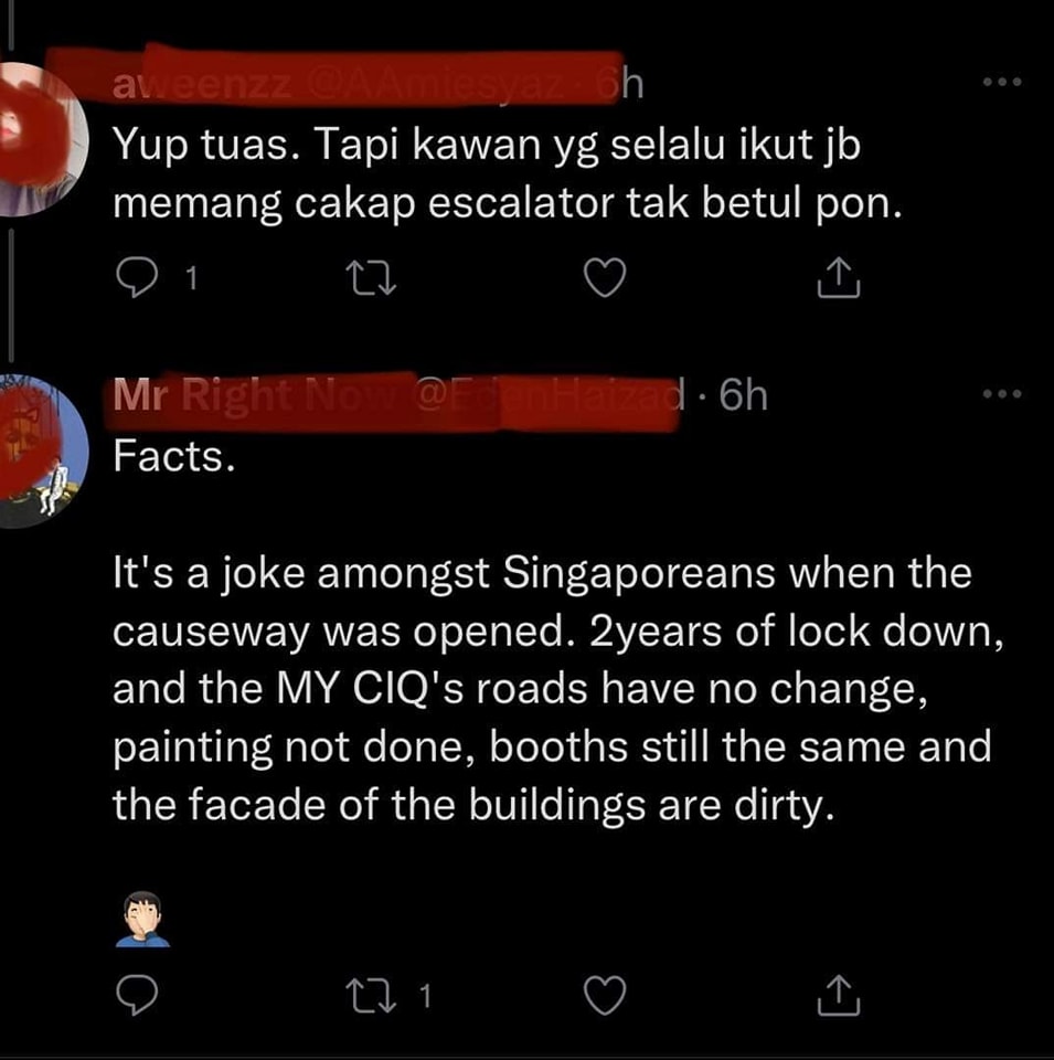 有网友认为,大马在维护设施水平上,一直都不达标,更指应该中止负责维护CIQ设施的承包商合约。