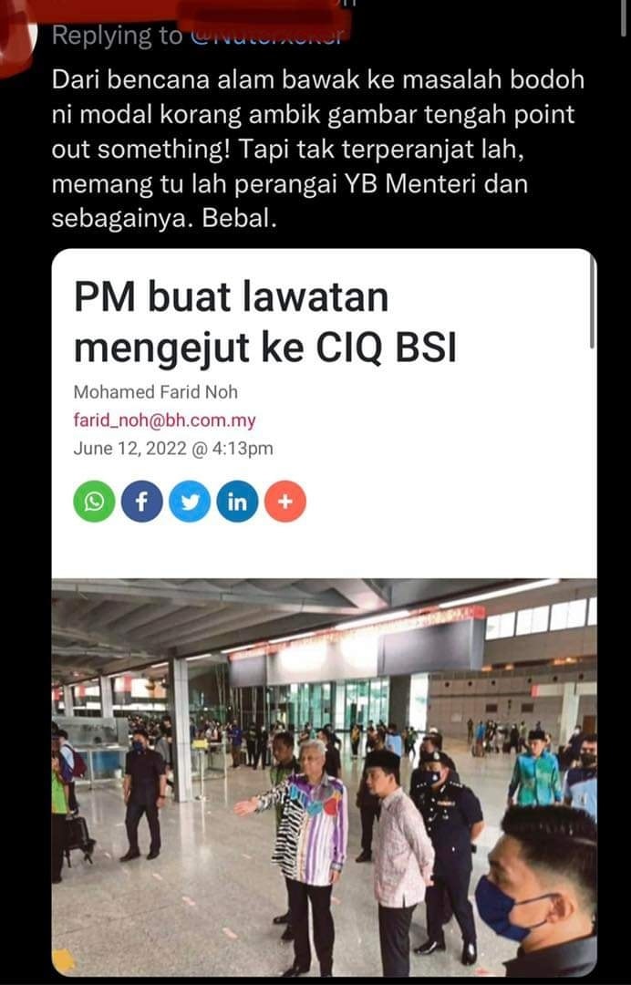 越堤的女网民Nadira于前日(19日) 在推特贴文,直接对苏丹依斯干达大厦内的移民、关卡与检疫大厦( CIQ)开炮,宣称有感建造CIQ的人,像是吸了强力胶。