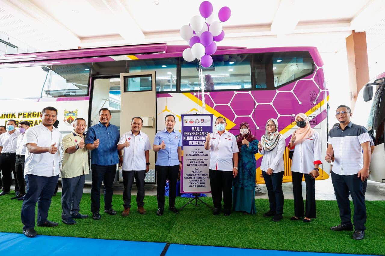 柔佛州务大臣拿督翁哈菲兹今日为Mohamed Noah基金会资助,由玛拉工艺大学(UiTM)医学系和牙科系推动的流动诊所,主持推介仪式。