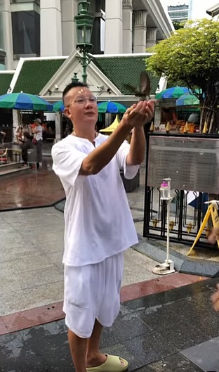 (泰国28日讯)阔别逾两年,新加坡艺人陈汉玮再次到泰国曼谷,大清早前往四面佛处祈福,并且聘请舞蹈员酬神助兴!