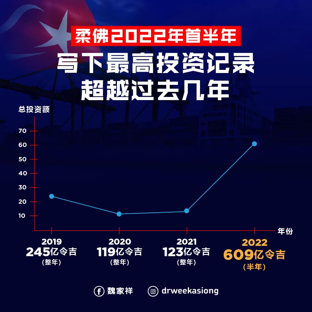 马华总会长兼交通部长拿督斯里魏家祥恭喜由州务大臣拿督翁哈菲兹所领导的柔佛州,在2022年上半年创下609亿令吉的投资额成绩,也是全国最高的投资额。