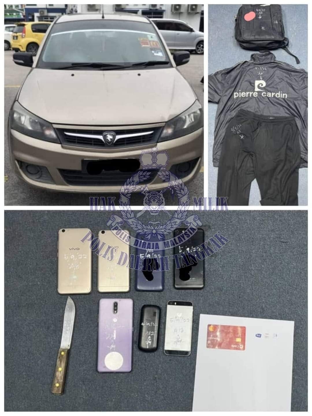 随着两人的落网,外劳的背包和手机也被寻获,嫌犯疑干案时使用的刀子也被找到。