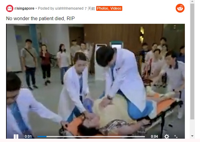有网民截取这段画面视上载至Reddit网站,调侃:“怪不得病人会死,安息。”