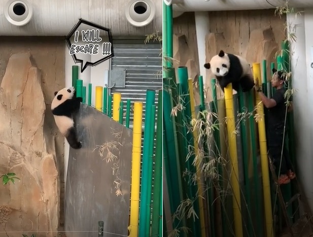 动物园不时在tik tok平台分享动物园有趣画面,包括熊猫家族和宝宝的日常,可见熊猫宝宝相当顽皮,常让物饲养员心力交瘁,甚至还得阻止它“逃园”。