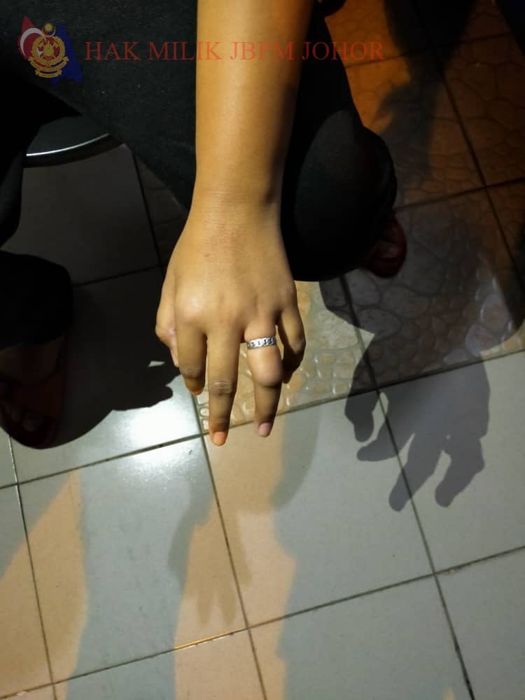 社会时事 10岁男童戒指拔不出 消拯员深夜“解救无名指” 2021 年 6 月 15 日2021 年 6 月 15 日 (新山15日讯)10岁男童戒指拔不出,劳动消拯员深夜前往“解救无名指”。 士姑来消拯局于昨日晚上11时22分,接获投报,指一名男童左手无名指被戒指套牢,无法取出。 从消拯局所上载的照片所见,可见男童无名指出现肿大情况。 消拯局派员前往男童位于富莱苑(Taman Sri Pulai Perdana)住家,利用旋转电动工具将戒指剪开,让男童终于脱困。 消拯队也于深夜11时47分收队。 图:柔州消拯局 ↓↓最近新闻↓↓ 分享 Facebook Twitter Pinterest Linkedin