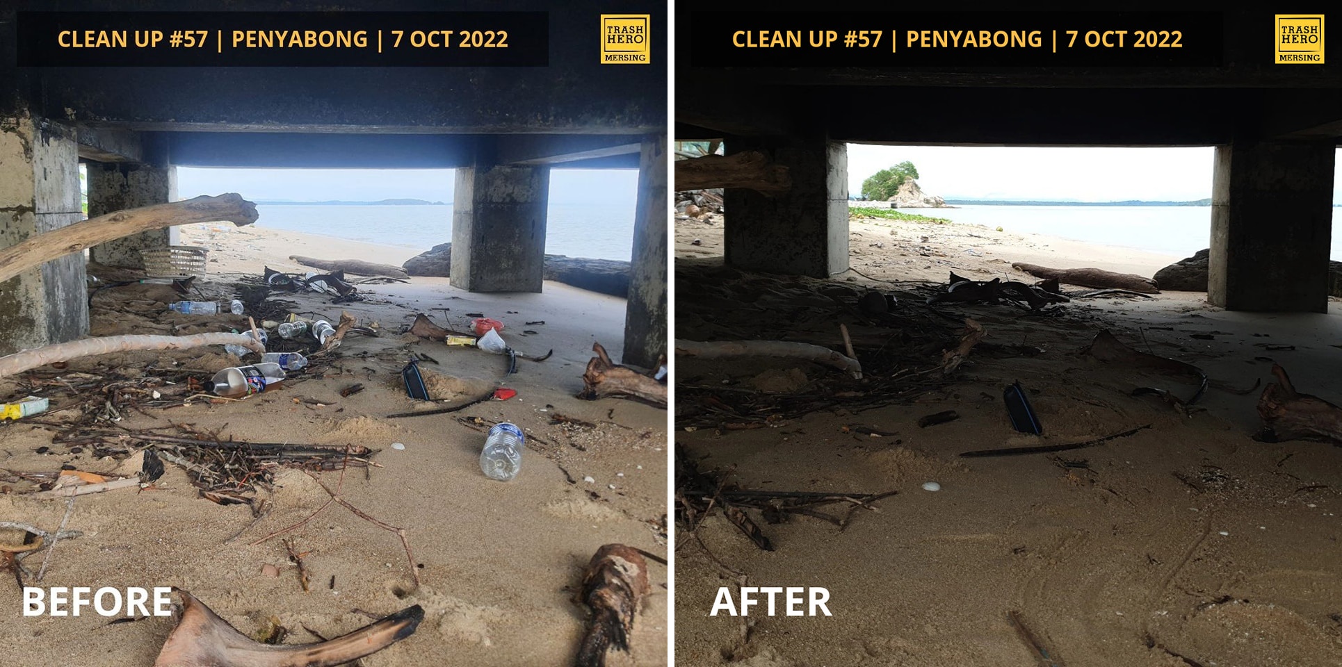 该组织面子书贴文指出,当天到达时,潮水仍然很高,在海滩上留下了很多垃圾。来自Penyabong 的垃圾小英雄trash hero kids) 加入一同努力收集垃圾。