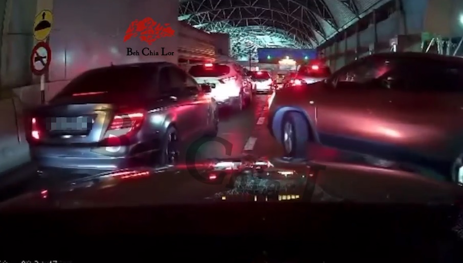 相信从女司机行车记录仪所摄视频内容,声音可听见女司机一开始便埋怨,遭一辆新加坡车贴得很紧,接着又多辆轿车纷纷插队,更造成其轿车被擦撞。