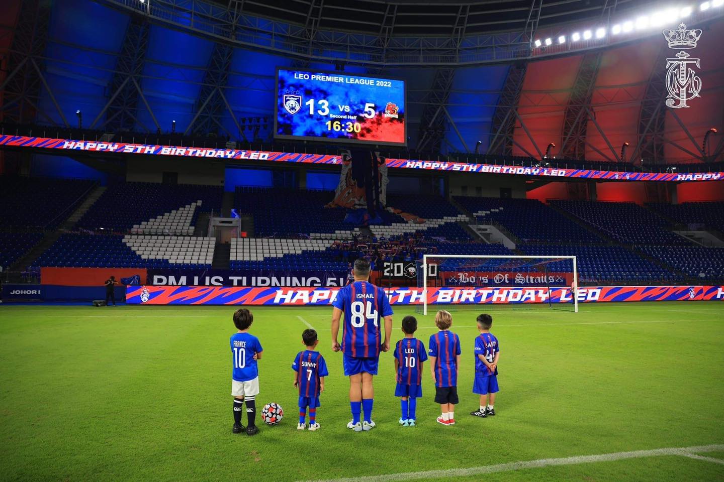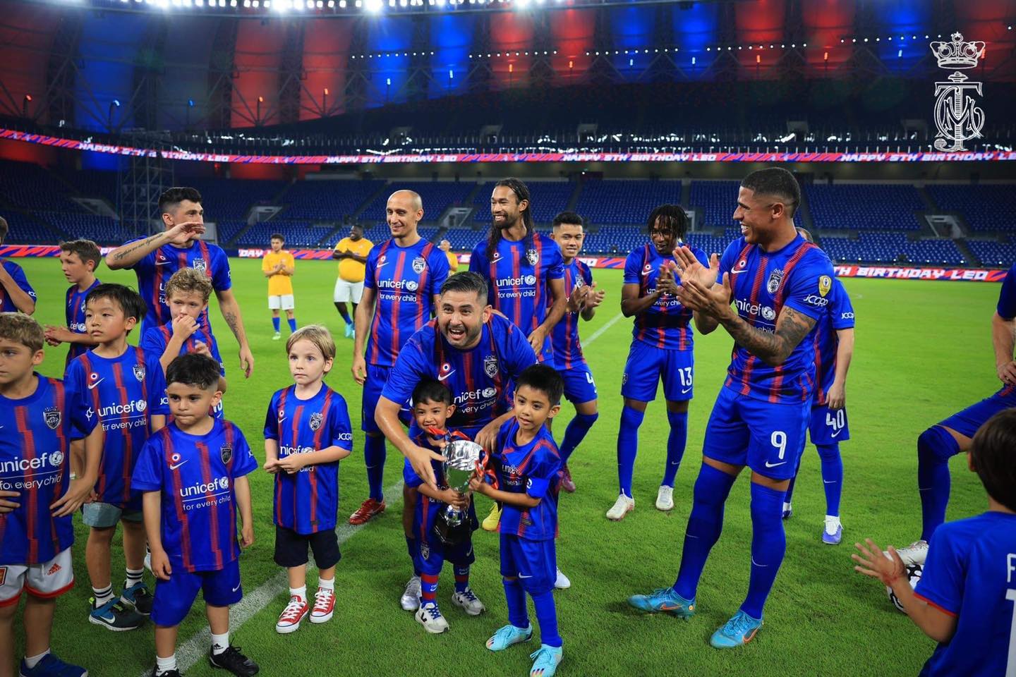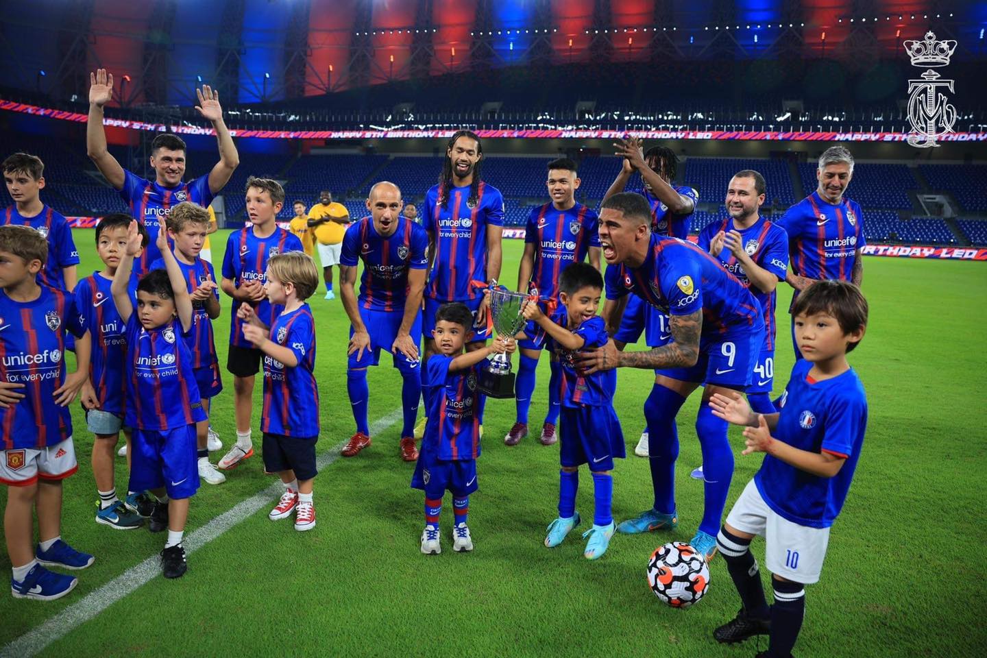 今日是柔佛副王东姑依斯干达阿都嘉里尔生日,柔佛王储一家和JDT(柔佛达鲁塔克欣足球队)球员,到足球场上替副王庆生。
