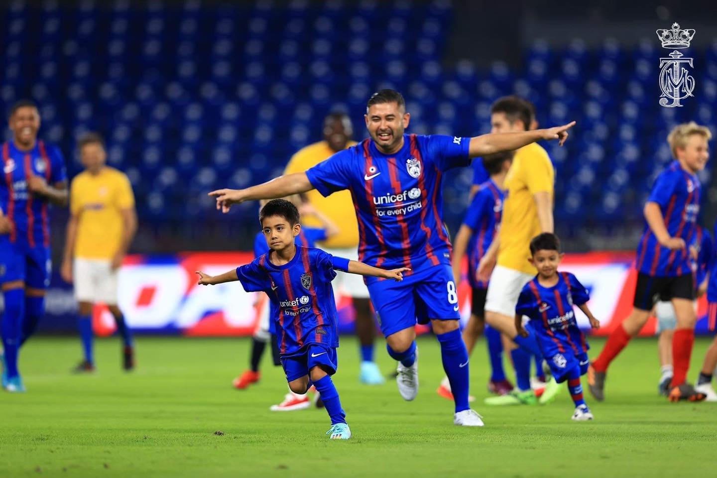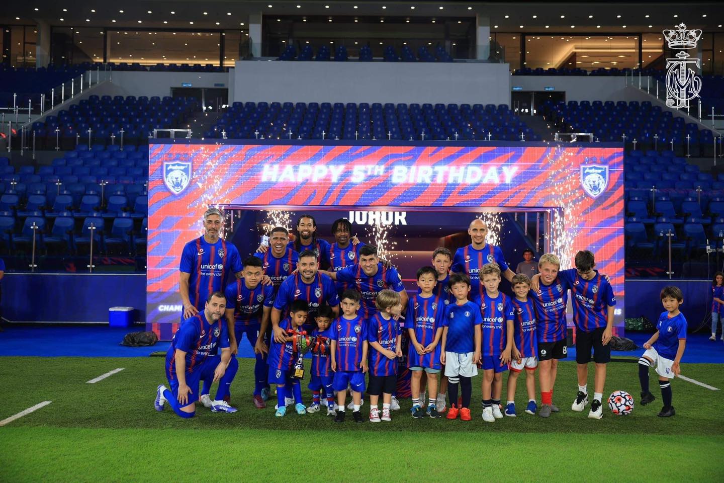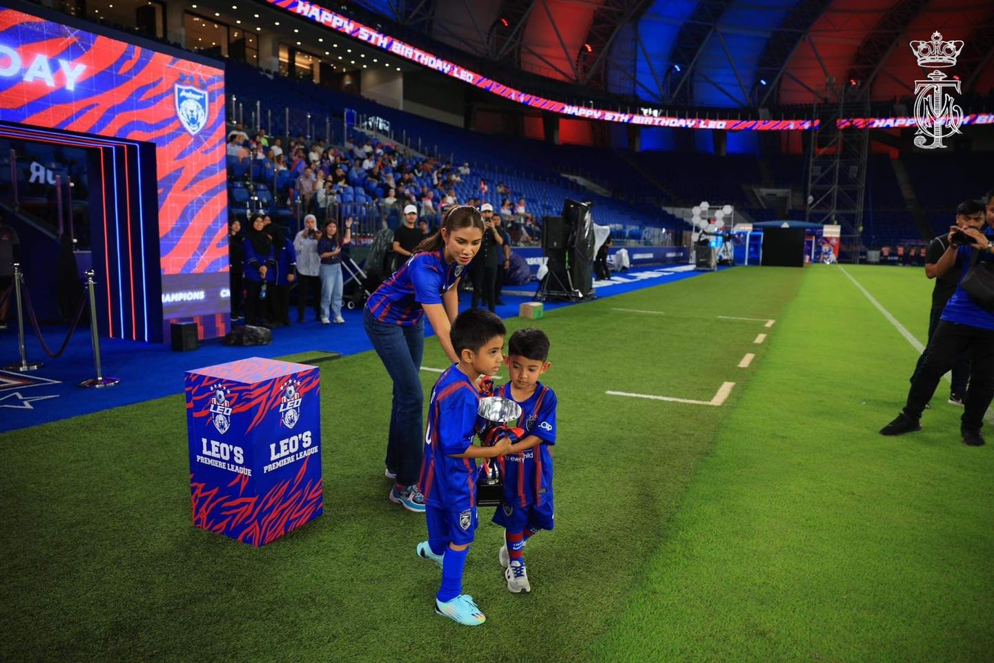 今日是柔佛副王东姑依斯干达阿都嘉里尔生日,柔佛王储一家和JDT(柔佛达鲁塔克欣足球队)球员,到足球场上替副王庆生。