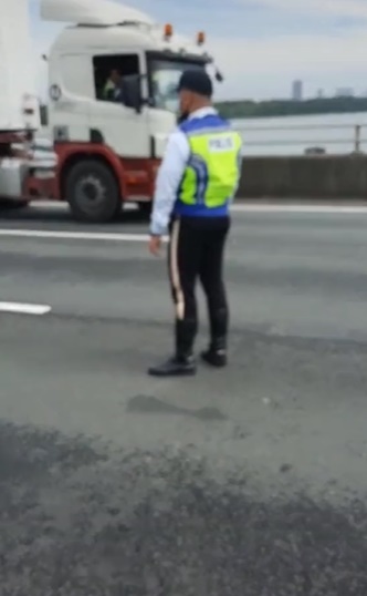 他说,警方已接获相关隶属丹绒古邦交警警员的报告,初步了解,事主指该名交警在有关地点,指拖格罗厘行驶在右侧车道,该车道该是轻型车辆通行的通道。