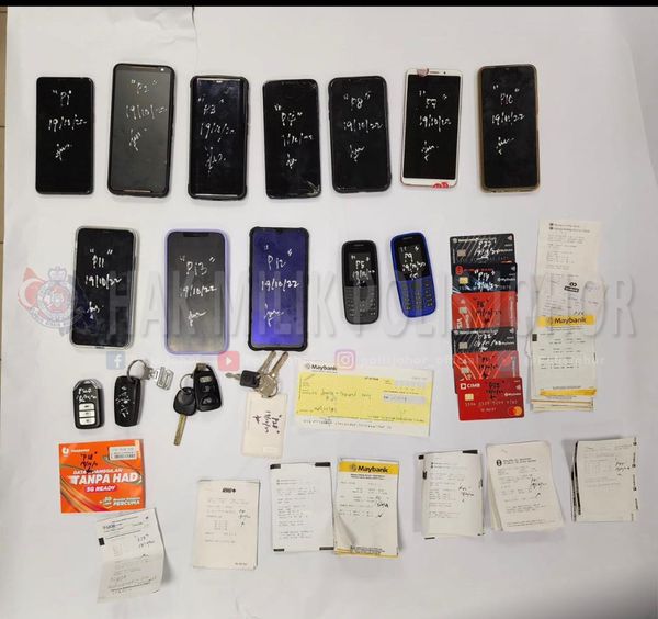 他指出,行动中起获12台手机、12张sim卡、6张提款卡、1张支票、46长银行账号收据、1本借贷记录薄、4辆轿车、1台电脑。
