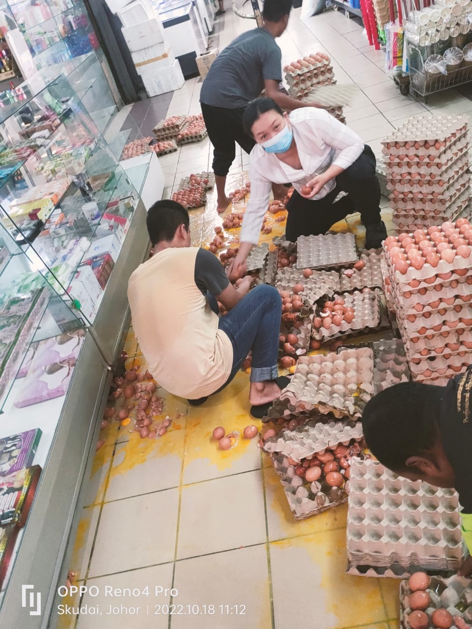 (新山19日讯)在一蛋难求之际,看见这“翻车”场景,难免有种“蛋蛋的忧伤”!