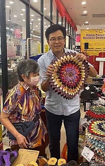 马华居銮区会主席颜炳寿日前(23日)在面子书上载视频,介绍位于友谊花园(Taman Muhibbah)Songmart的小摊位,是名华裔老妇摆卖洋货,包括老妇亲手缝制的垫毯。