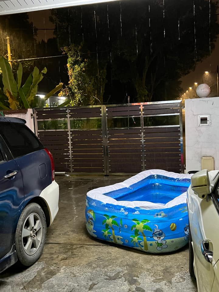 新山东北区受制水影响居民也趁雨天,赶紧收集水,以便用来用洗刷用途。大家甚至动用各种可装雨水的器皿,只为能装多少是多少。
