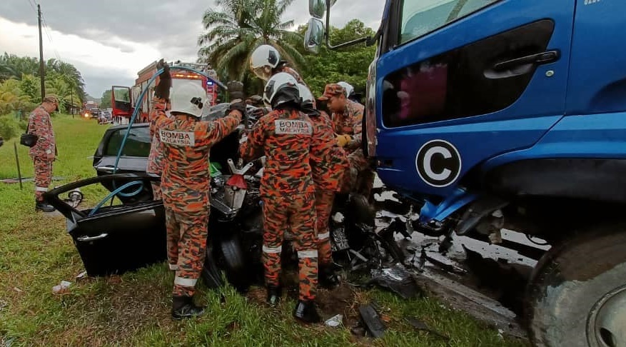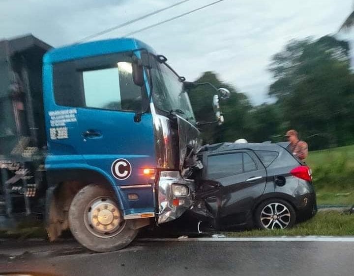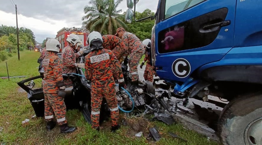 (笨珍1日讯)又是夺命车祸!私家车与巨无霸迎面相撞,造成华裔男司机夹毙车内。