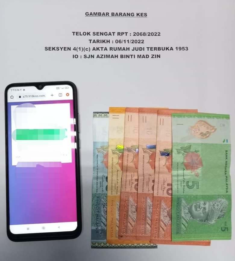 警方也发现6间手机店涉及网上赌博a79.918kiss.com和mega888,作为帮忙赌客充值收注站。