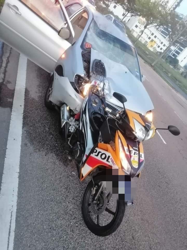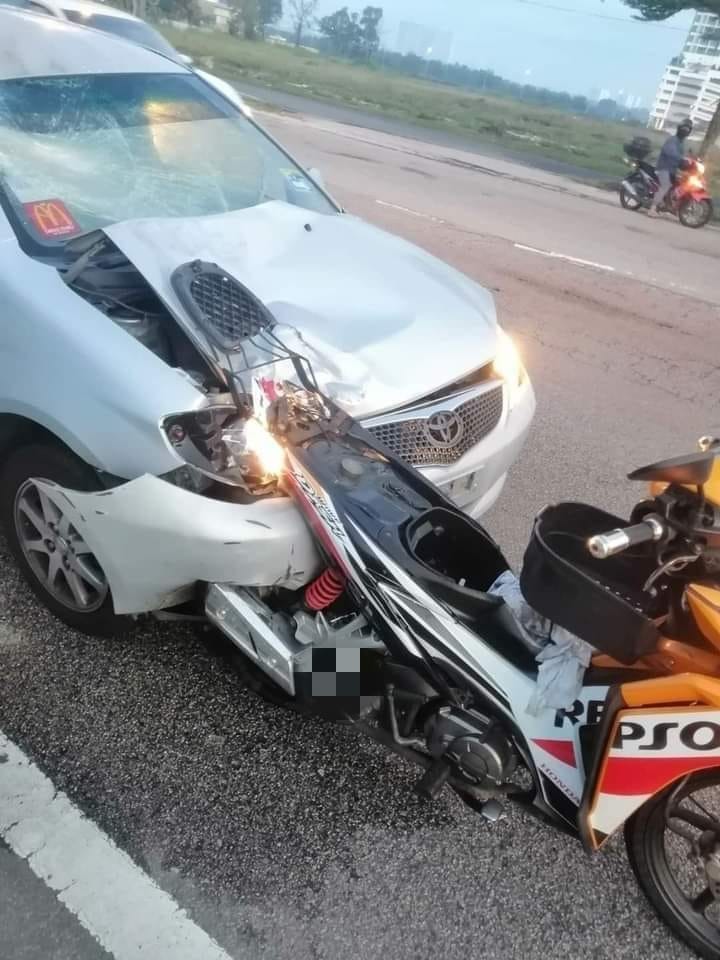 新山南警区主任拉勿今日发文告指出,一名60岁本地男子骑士Honda Wave摩哆,行驶在右车侧车道,从新山往巴西古当方向时,被一辆同方向行驶的Toyota Vios轿车,撞及后方。
