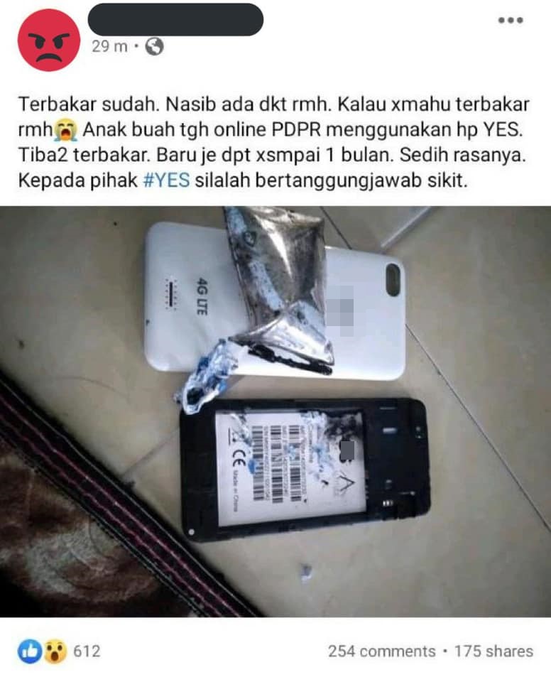 麻坡区国会议员赛沙迪过去两日社交媒体上载,有关学生获得政府所赠的手机,以用作网课用途,没料到频频出“状况”,如档机、爆炸和起火问题。