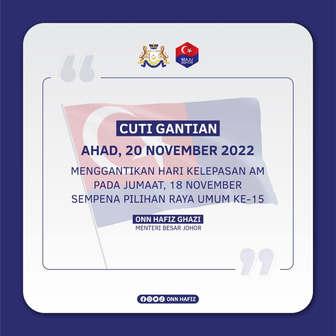 由于看守政府首相拿督斯里依斯迈沙比里宣布,11月18日和19日是公共假期,以方便人民在第15届大选回乡投票,履行公民责任。