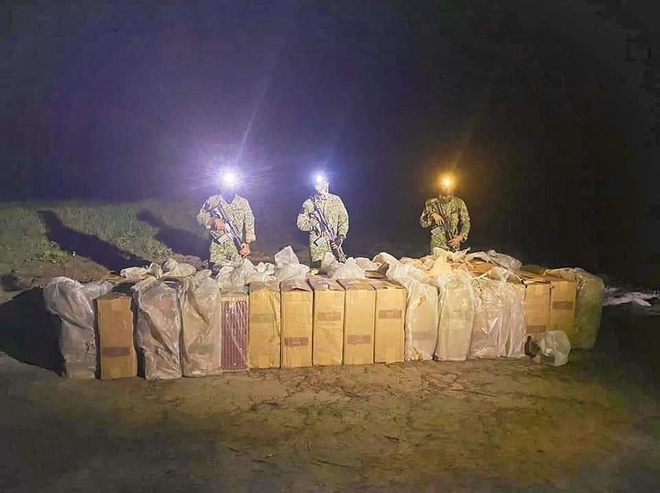 (哥打丁宜21日讯)价值逾10万令吉的走私香烟,被搁置在海边,被巡逻军队发现,全数充公。