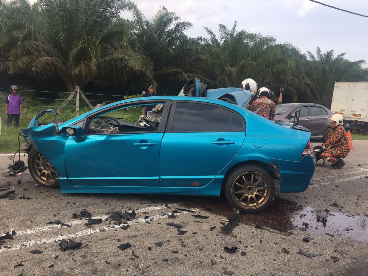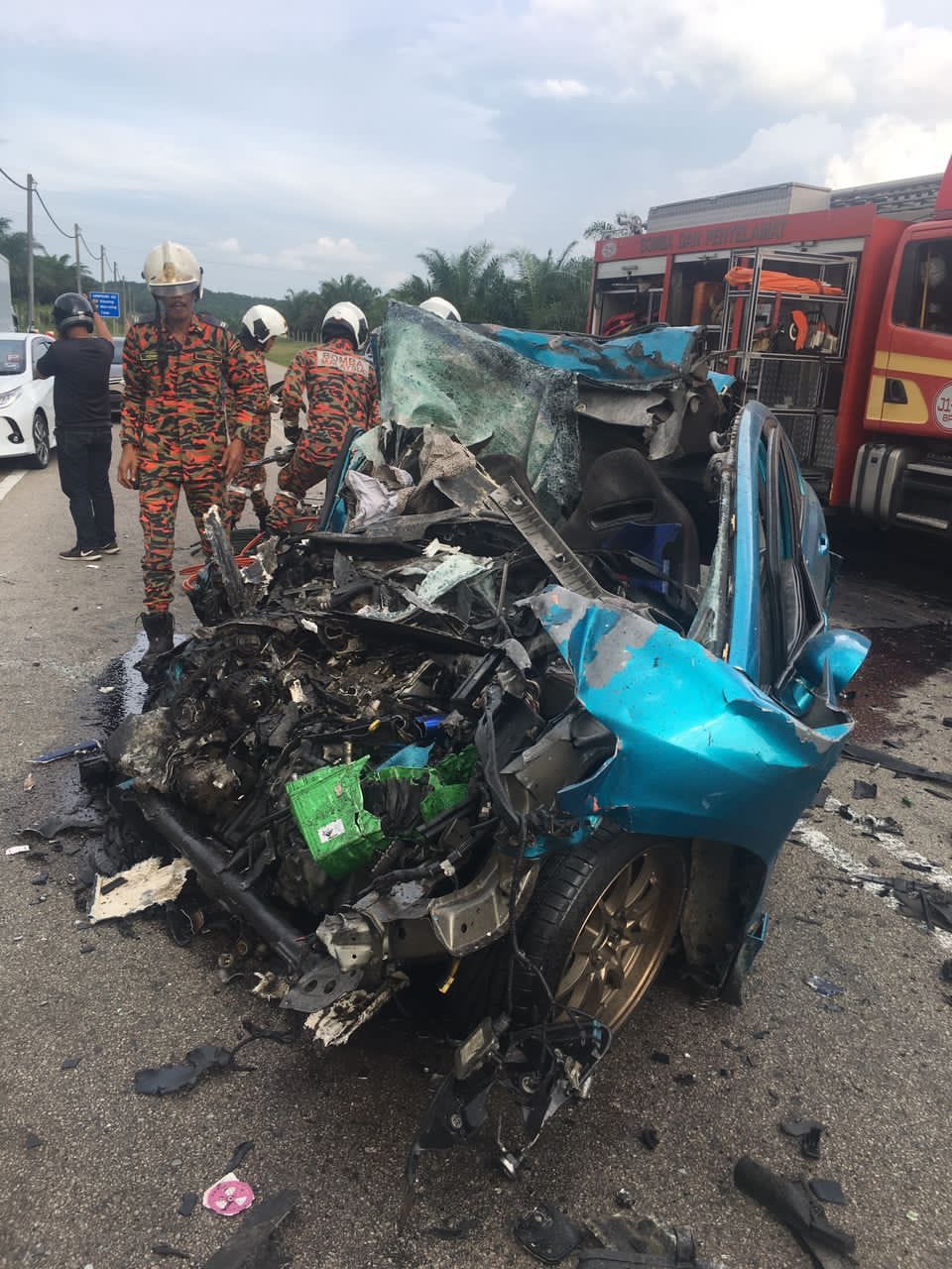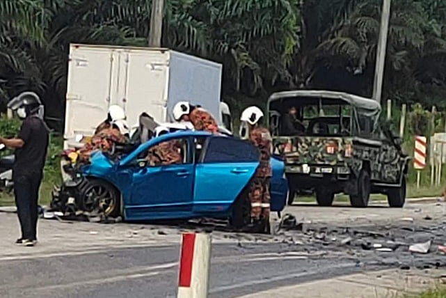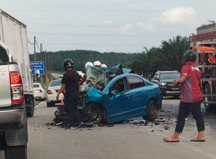 车祸现场涉及的是本田Civic和Scania罗厘,23岁巫裔轿车男司机被夹困在车内,消拯人员使用工具将他移出后,经医务人员检查证实已气绝。