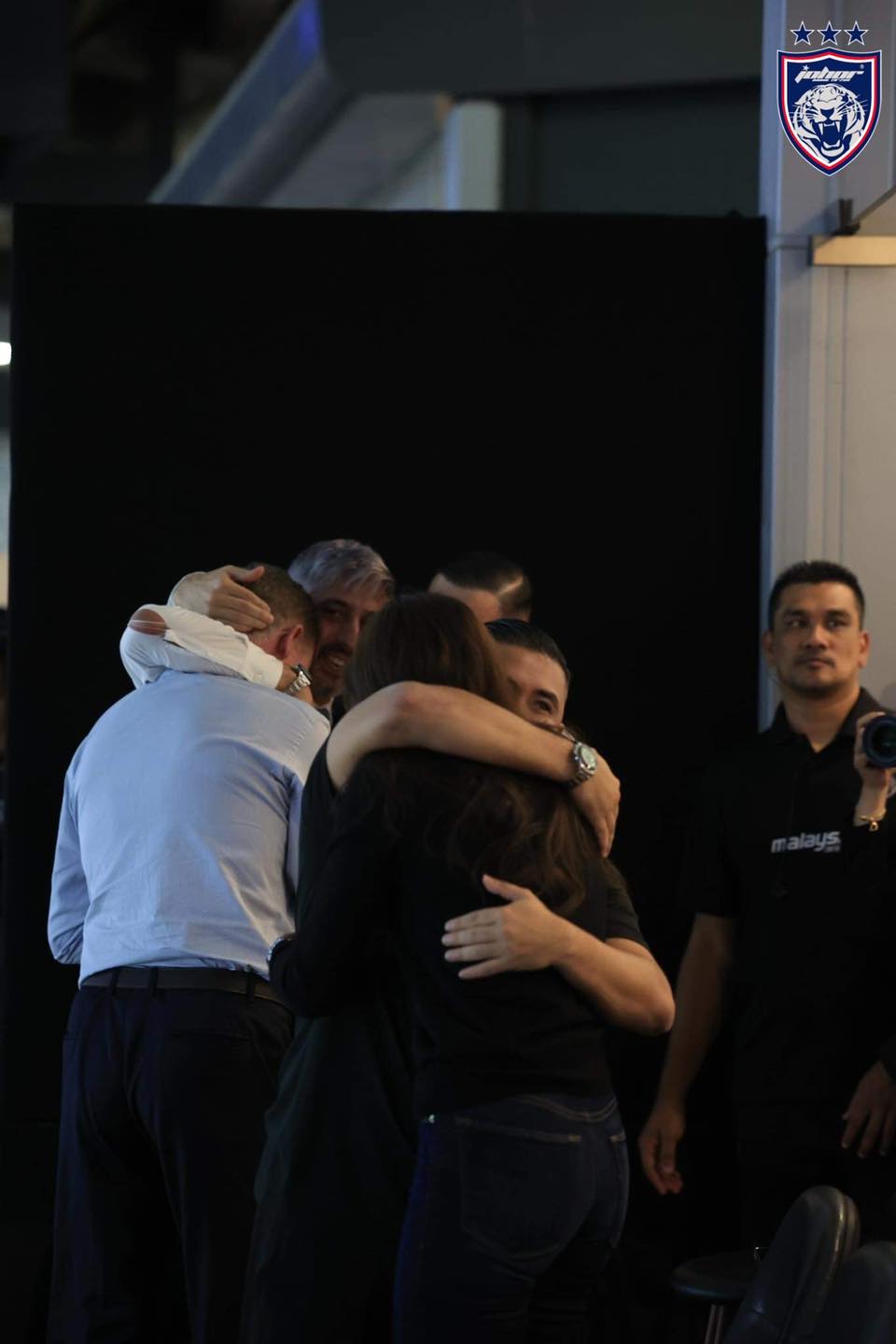 昨晚到场观赛,看见JDT顺利夺杯,王储激动抱着柔佛王储妃卡丽达,以及球队的成员。之后王储也获球员高举抛空庆祝。