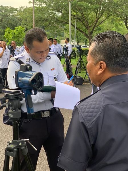 柔佛交通执法与调查组日前(24日)在面子书,上载了一群交警正在操作测速相机的照片,并指这是交警出席了在公共工程局进行的TRUCAM校准和例行检查工作。