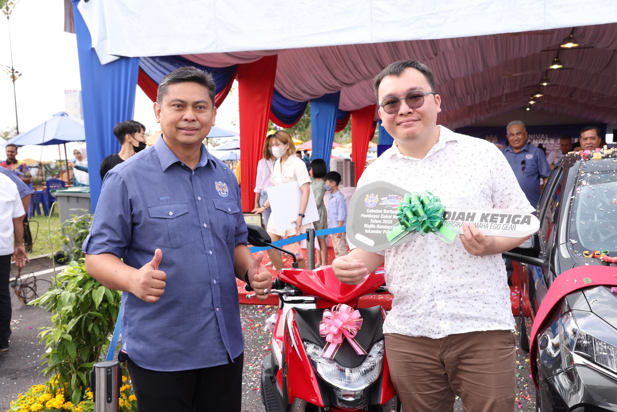依斯干达公主城市政局在迎接升格5周年嘉年华会上,举行门牌税幸运抽奖颁奖仪式,由市长拿督阿都拉昔于昨早10时,在美迪尼的花园抽出幸运儿。