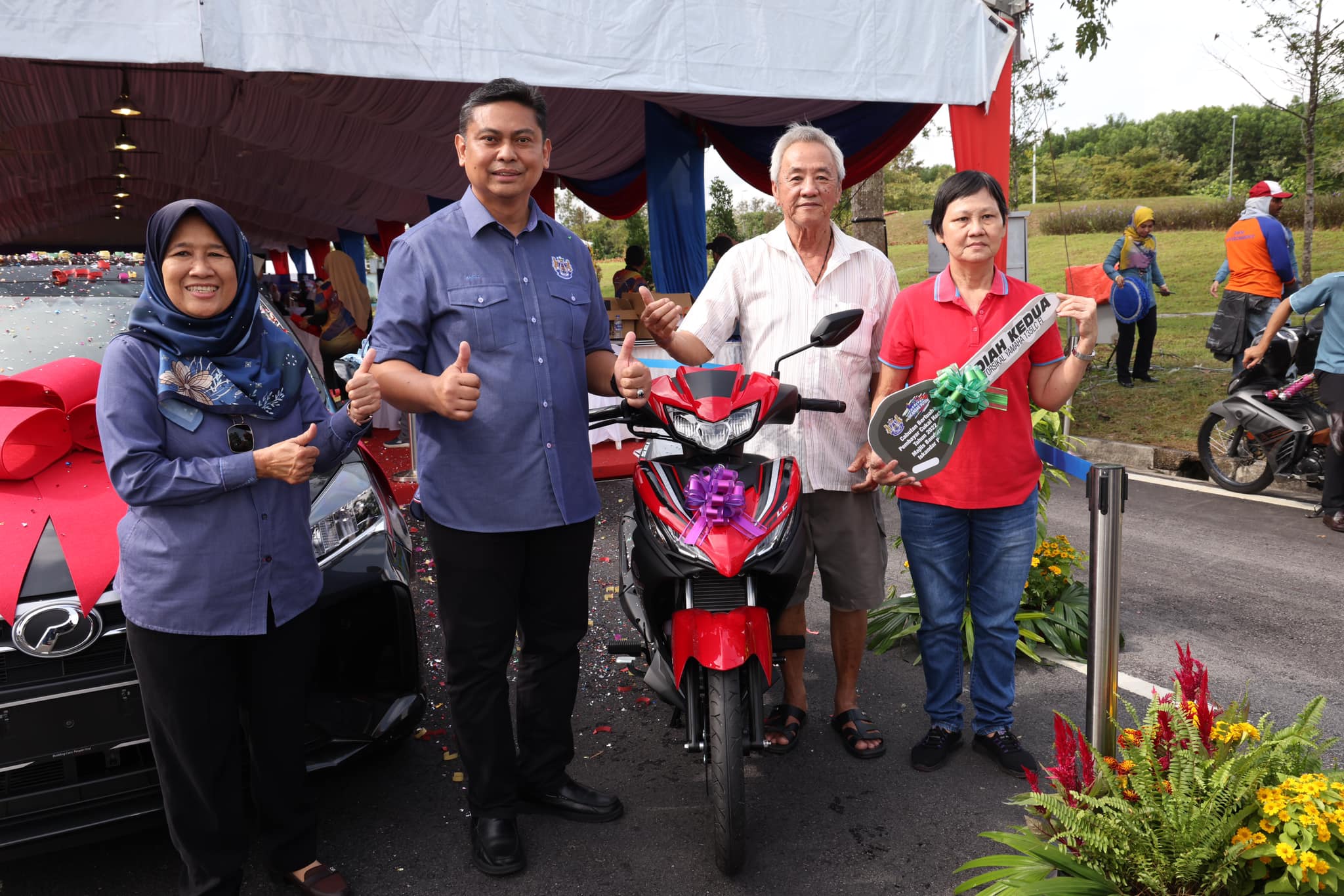 首奖是价值5万令吉的国产Myvi轿车,由女屋主Rosminah赢得。