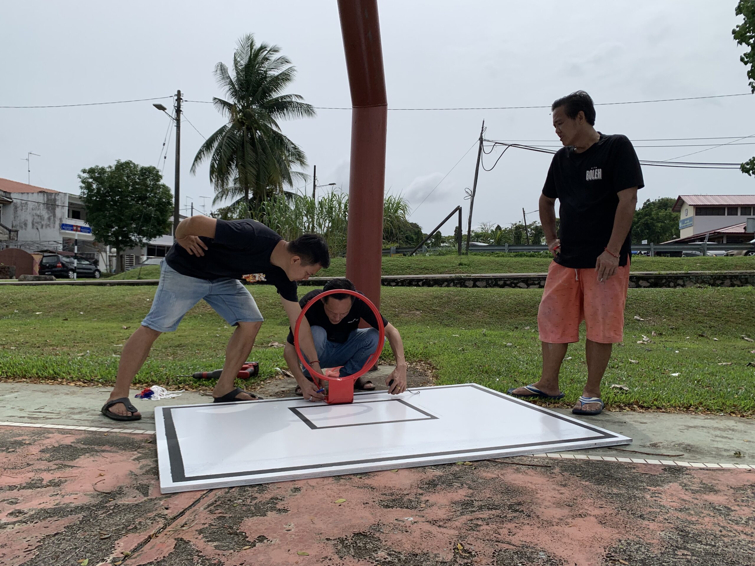 (新山23日讯)篮板和篮筐被拆掉,蓝球场沦为虚设,行动党特别行动队成员、居民和热心志工一起构思后,在最短时间内完成修复,终于青少年们能继续练球“投篮”。