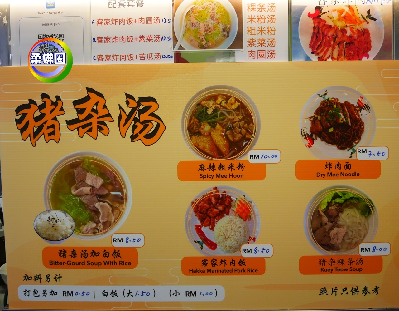 这里除了苦瓜汤、客家炸肉饭和炸肉面都很受欢迎,其他选择有猪杂汤、麻辣粗米粉,甚至有划算的配套套餐。