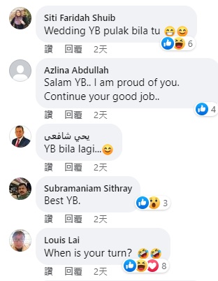 也有网民提醒“注意身体”,有的更是催婚问:“YB,什么时候轮到你?”、“什么时候轮到YB摆宴席?”。