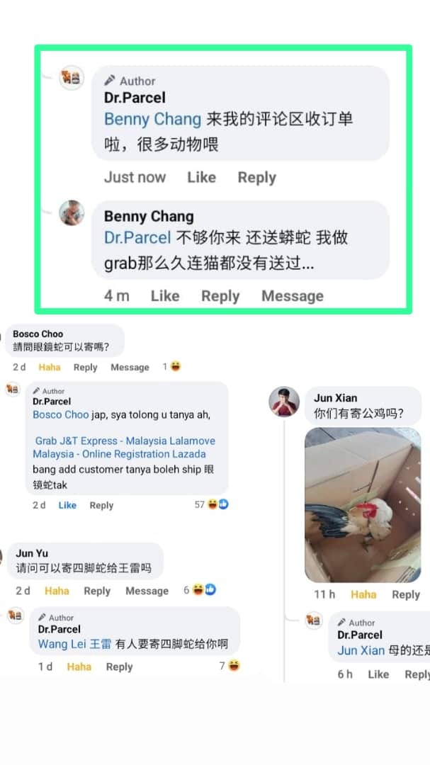 “我们是Dr.Parcel 不是grab。平时包裹慢来都要2至3天,幸好现在早到只是轻微缺氧,要不然导致我们杀生了。”