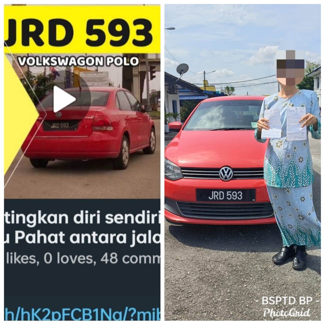 警方确认轿车注册和司机来自居銮,并且抵触道路交通法令(LN166/59) ,向便女司机发出违例通知书。