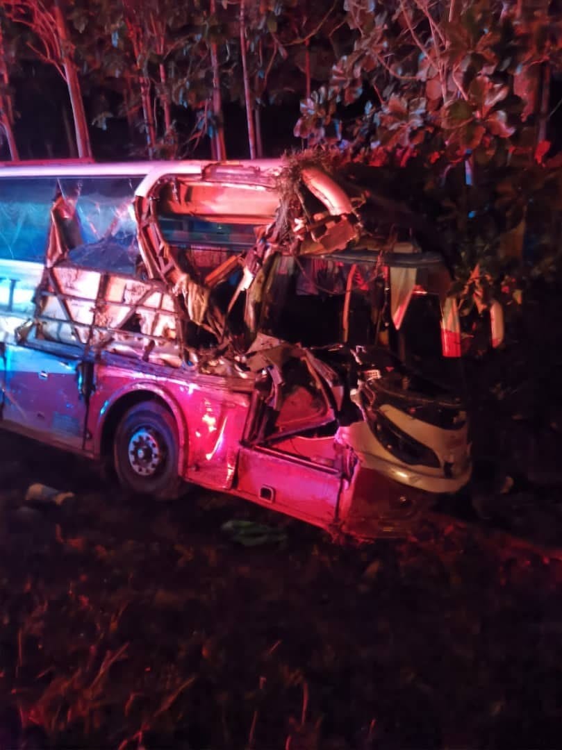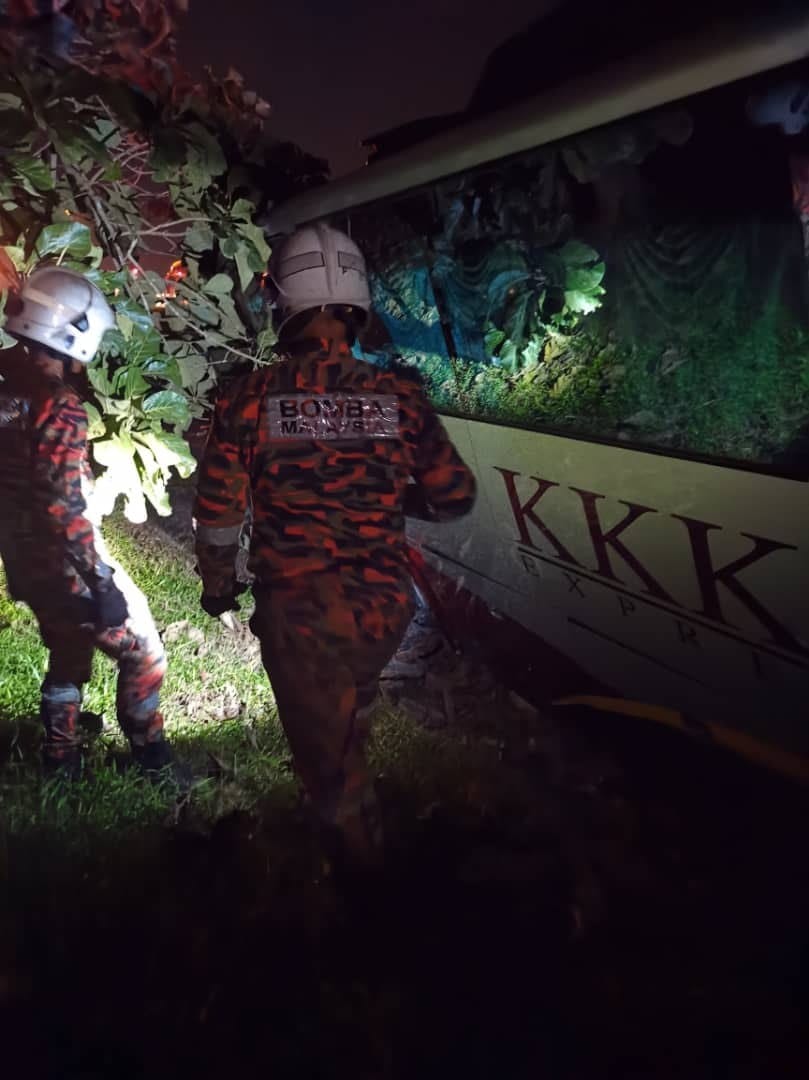 (古来10日讯)载有8名乘客的长途巴士,疑与罗厘相撞坠沟,造成巴士司机身亡。