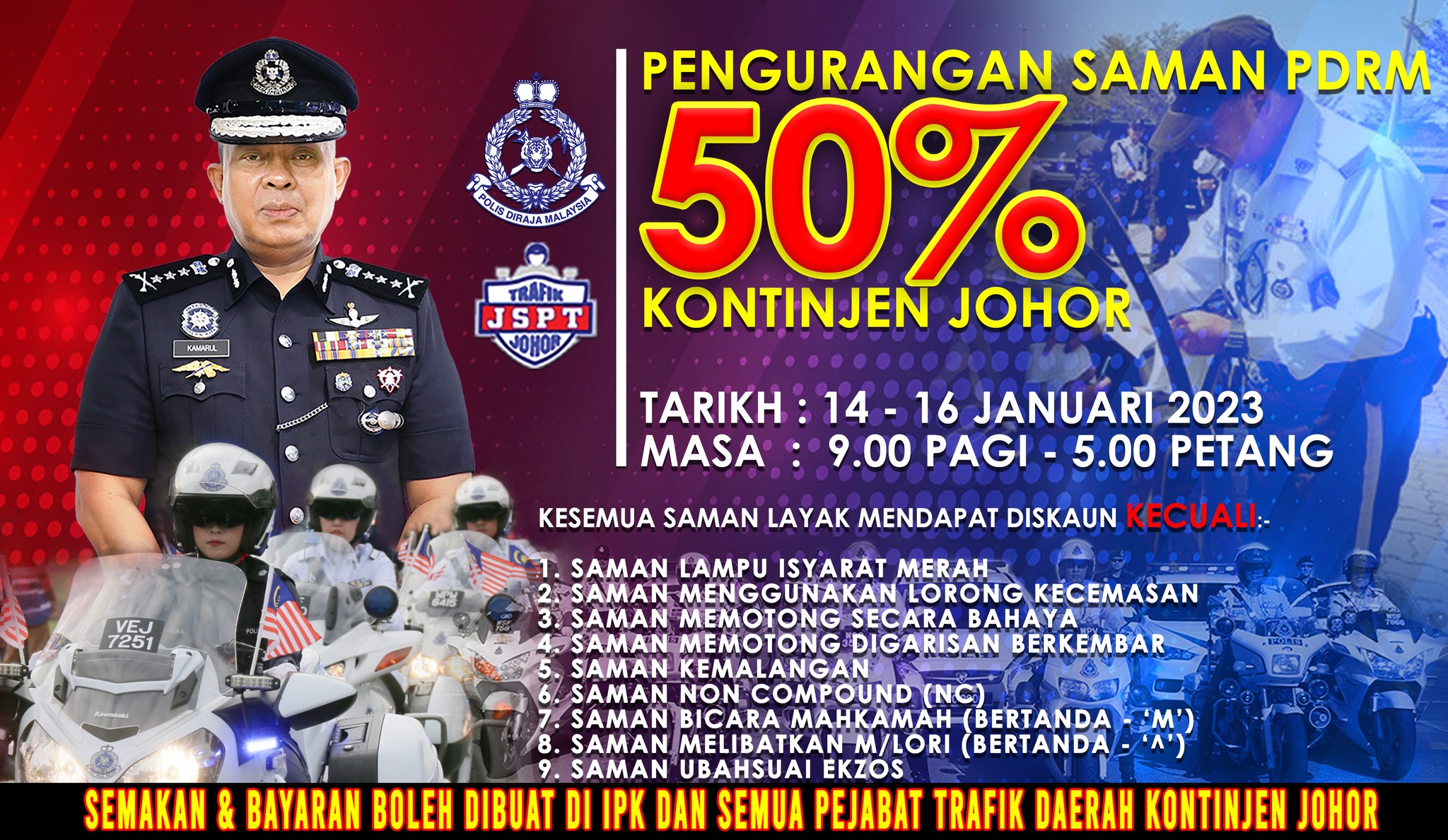 社会时事 拿了花红,可以还Saman料! 2023 年 1 月 11 日2023 年 1 月 12 日 柔佛警方罚单再次给予50%折扣,1月14日至16日,早上9时至下午5时,可前往各警区交警柜台缴还。 ✒️日期:1月14日至16日 ✒️时间:9am-5pm ✒️地点:柔佛各警区的交通柜台 但以下的罚单,无法享有50%折扣 📌闯红灯 📌滥用紧急车道 📌危险超车 📌双线超车 📌车祸 📌不可通过罚款解决的罚单 📌审讯中案件 📌涉及重型车辆 📌非法改装排气管 ↓↓最近新闻↓↓ 分享 Facebook Twitter Pinterest Linkedin