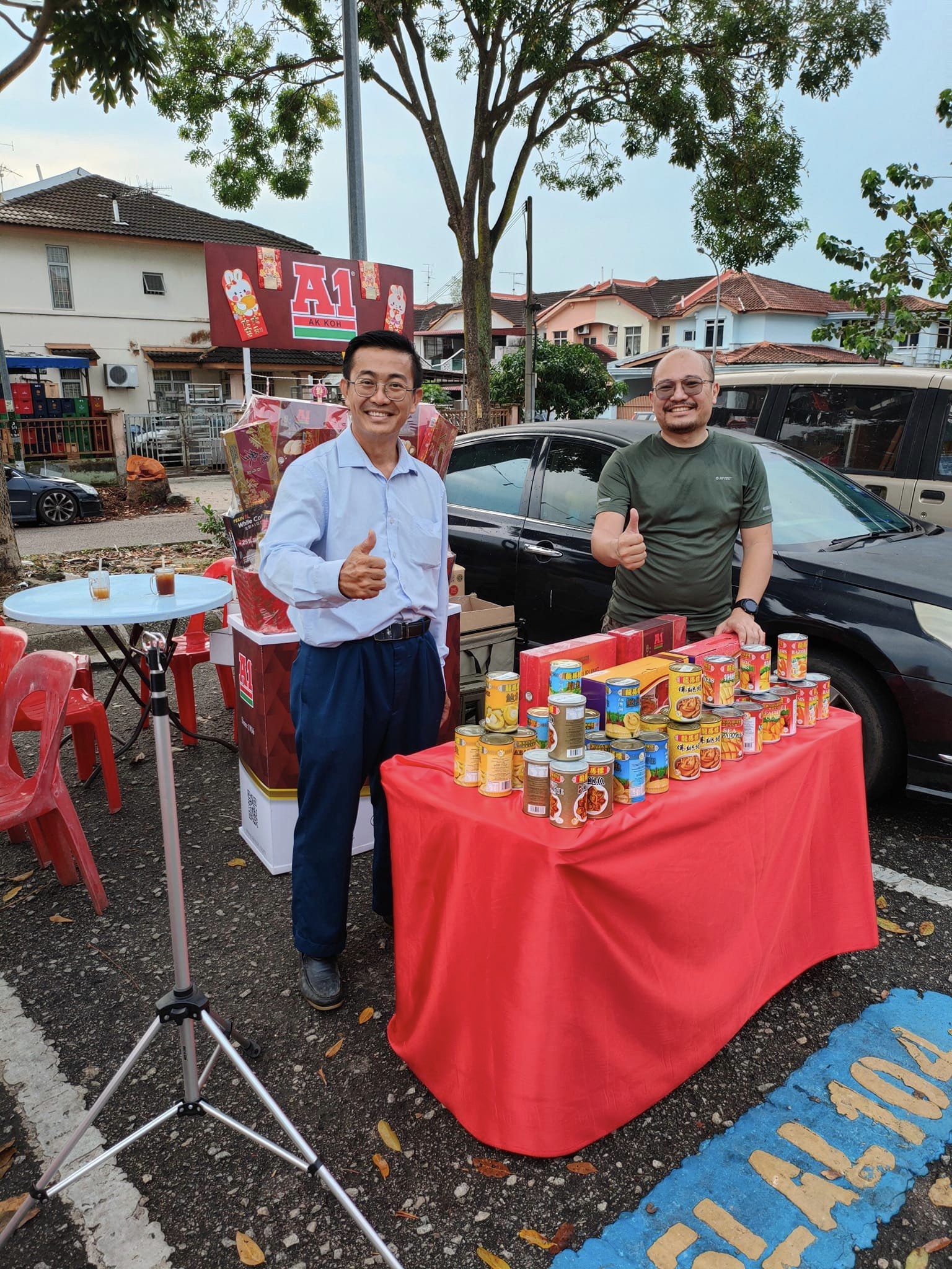 配合新春佳节,民主行动党北干那那区前州议员杨敦祥、柏伶区前州议员邹裕豪卖鲍鱼、鲍贝、燕窝,并且在新山武吉英摆摊。
