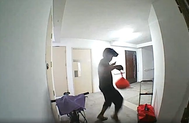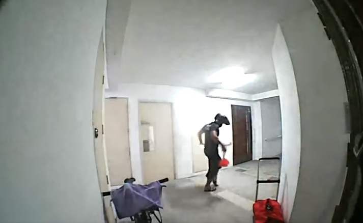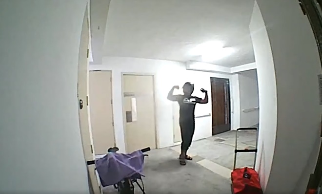 网民Syazwi Halip((33岁)日前在面子书上载一视频,是其住家屋前镜头所摄画面,一名活泼搞怪的送餐员,相信发现了摄像头,竟有模有样地以“月球漫步”舞步,把手上的餐食送到门前。
