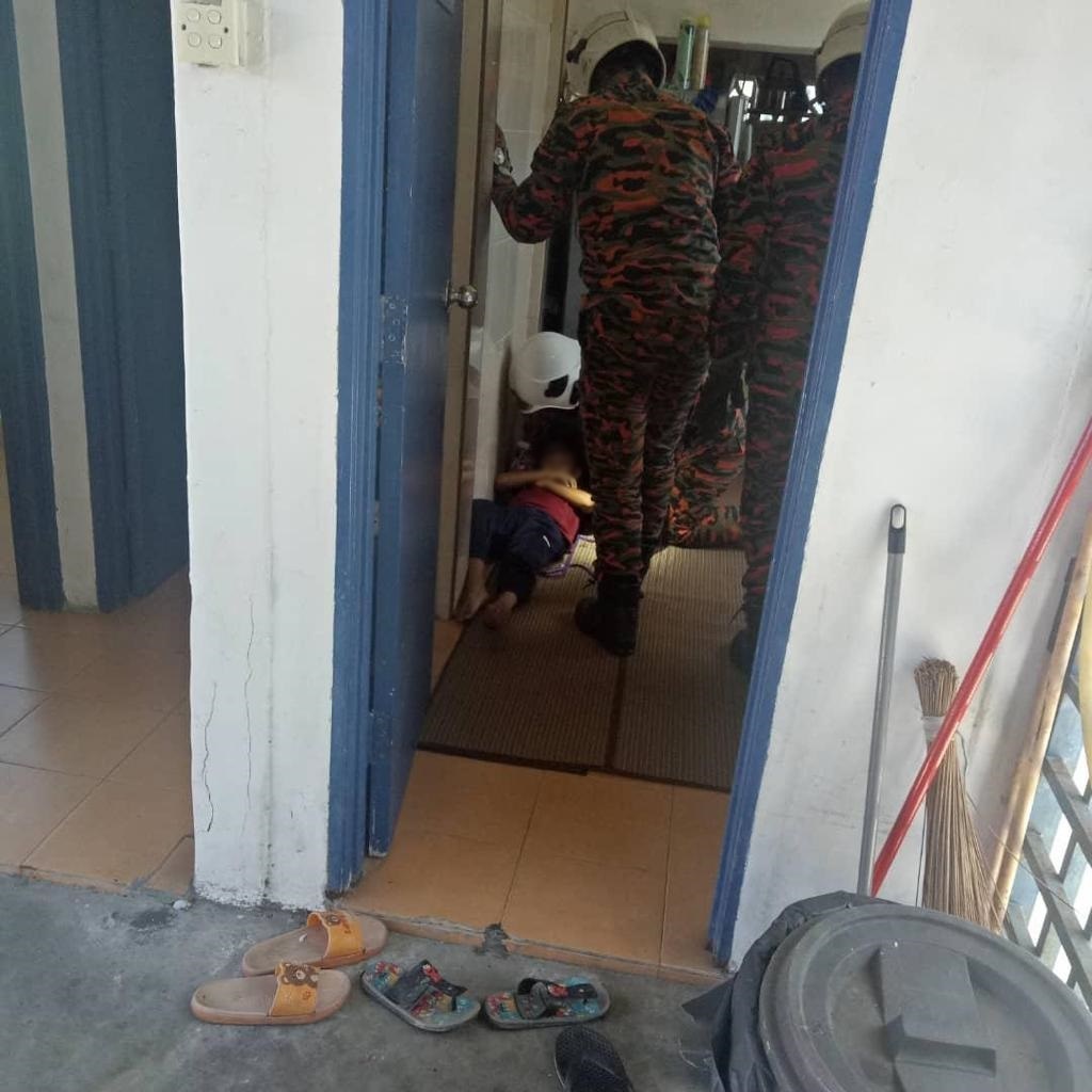 笨珍亚逸巴礼(Ayer Baloi )消拯局昨午12时35分,接获一宗罕见意外,即一名8岁男童躺在家庭储物室空间地板时,突遭小蛇钻进衣服。