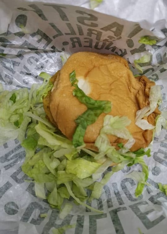 ( 新山27日讯)食客买鱼柳汉堡要求加生菜,一打开果真满满都是菜,有网友因此惊呼:“原来麦当劳可以加生菜!”