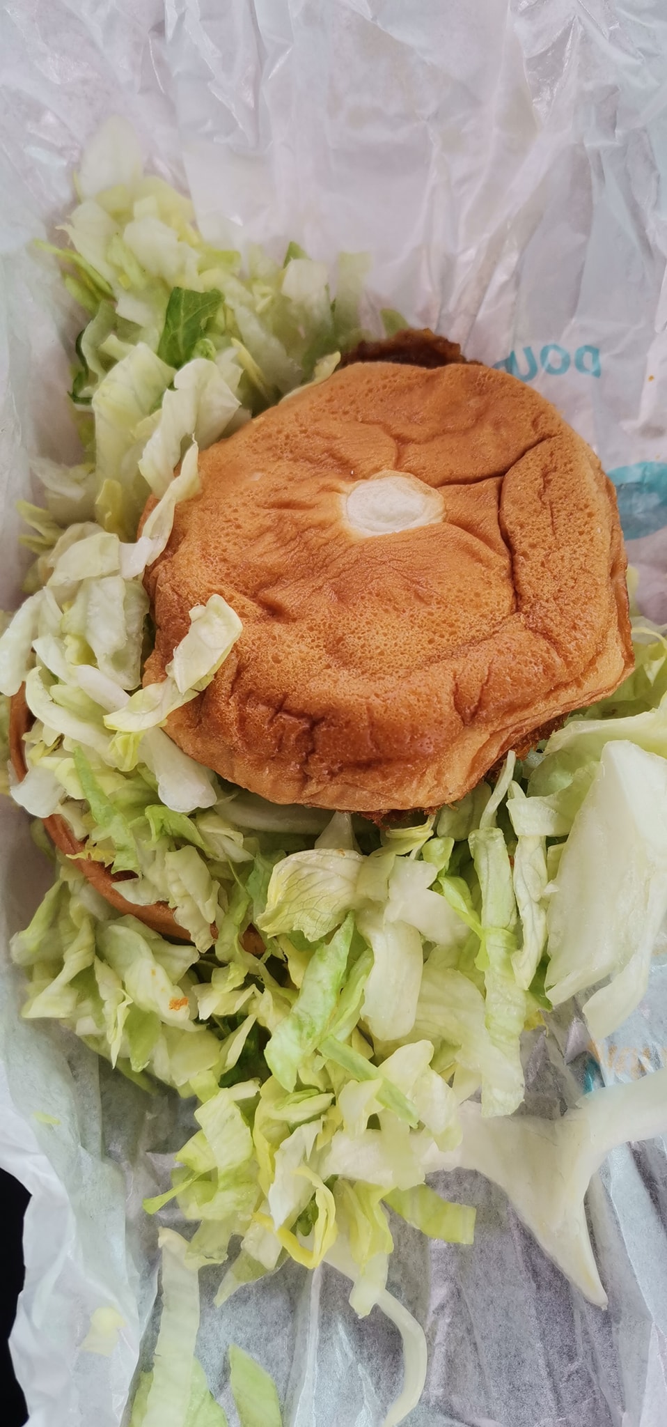 结果一打开汉堡包包装纸,映入眼帘都是生菜,店员真的太给力了。
