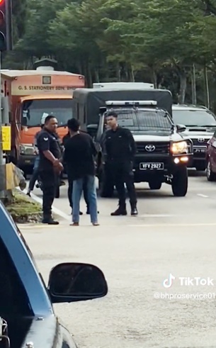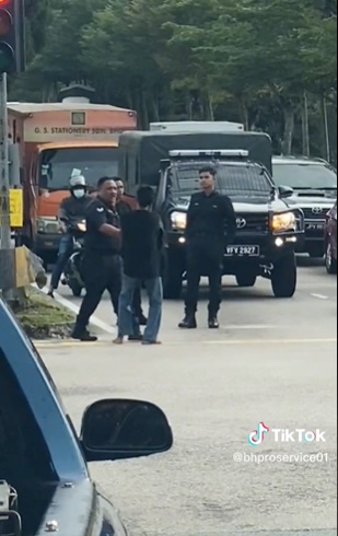 Tiktok流传视频,由“bhproservice01”账号上传,关于一名精神失常的男子,在至达城的surau路红绿灯处扰乱路况。