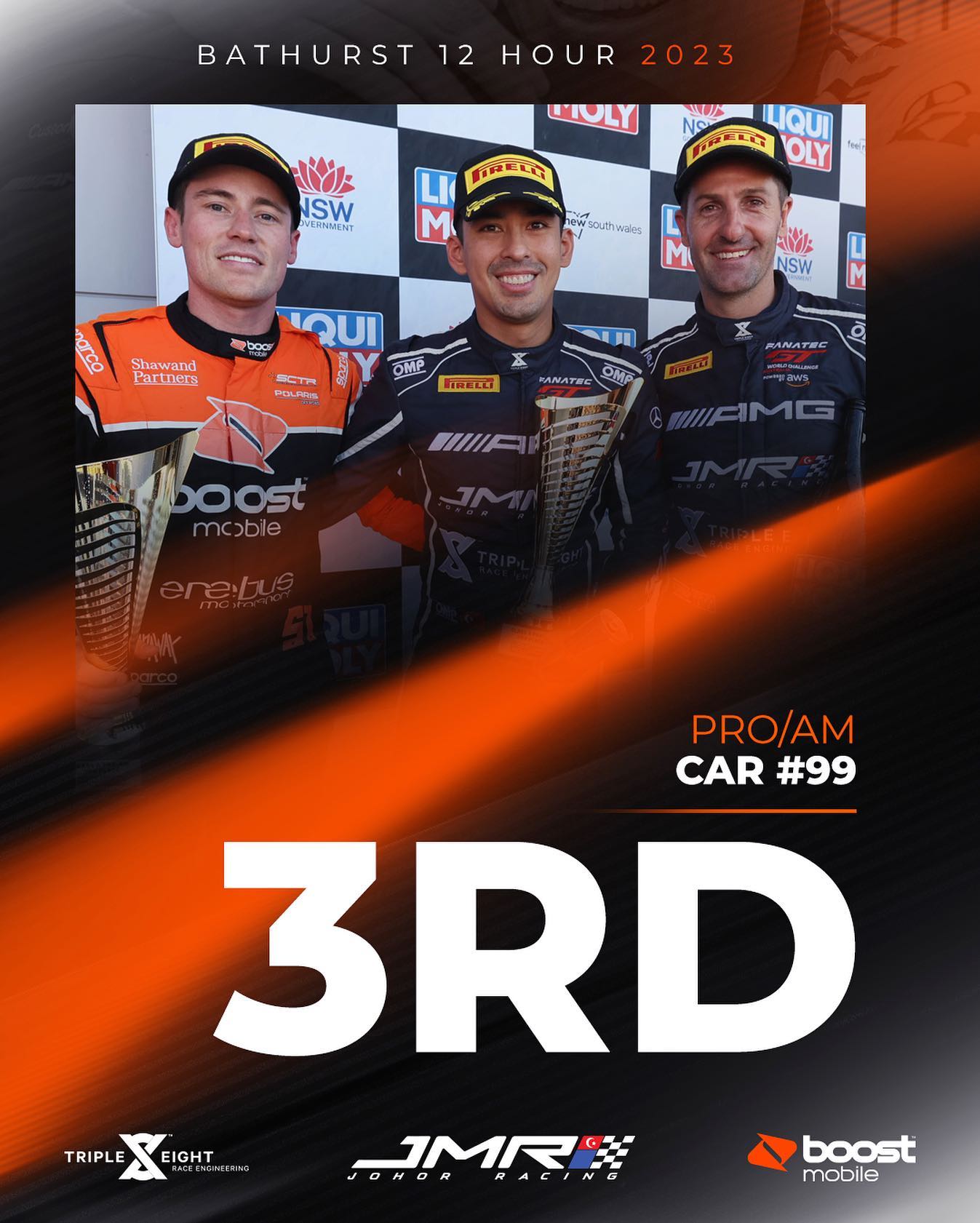 四王子今日在澳洲巴瑟斯特12小时耐力赛全景山赛道职业业余配对组中,驾驶的是Mercedes-AMG GT3,与搭挡Jamie Whincup获得第三名。