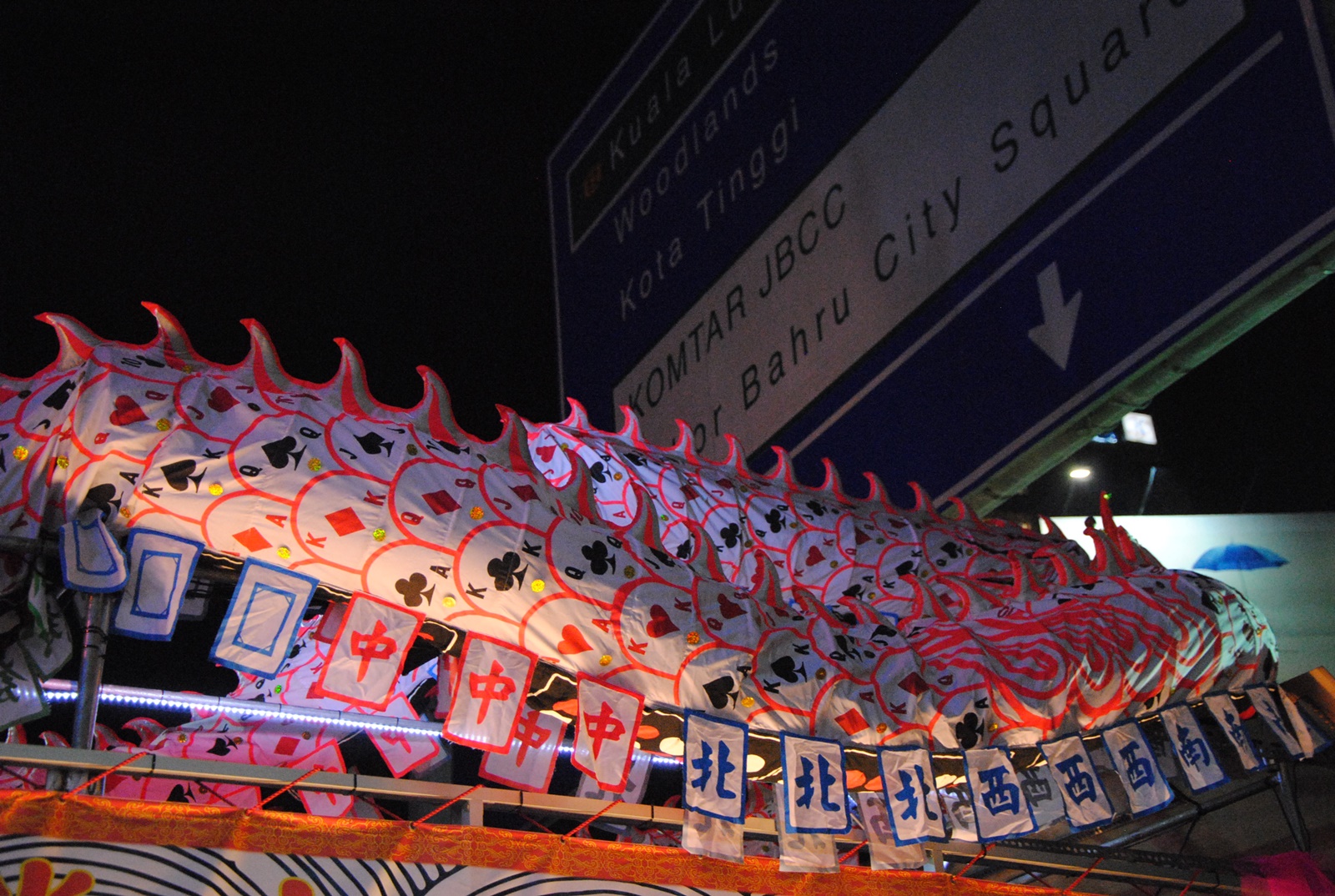 由200支象征柔佛古庙五尊神明的令旗组成,龙身长度为18公尺,龙身的每一截均装上5支令旗。