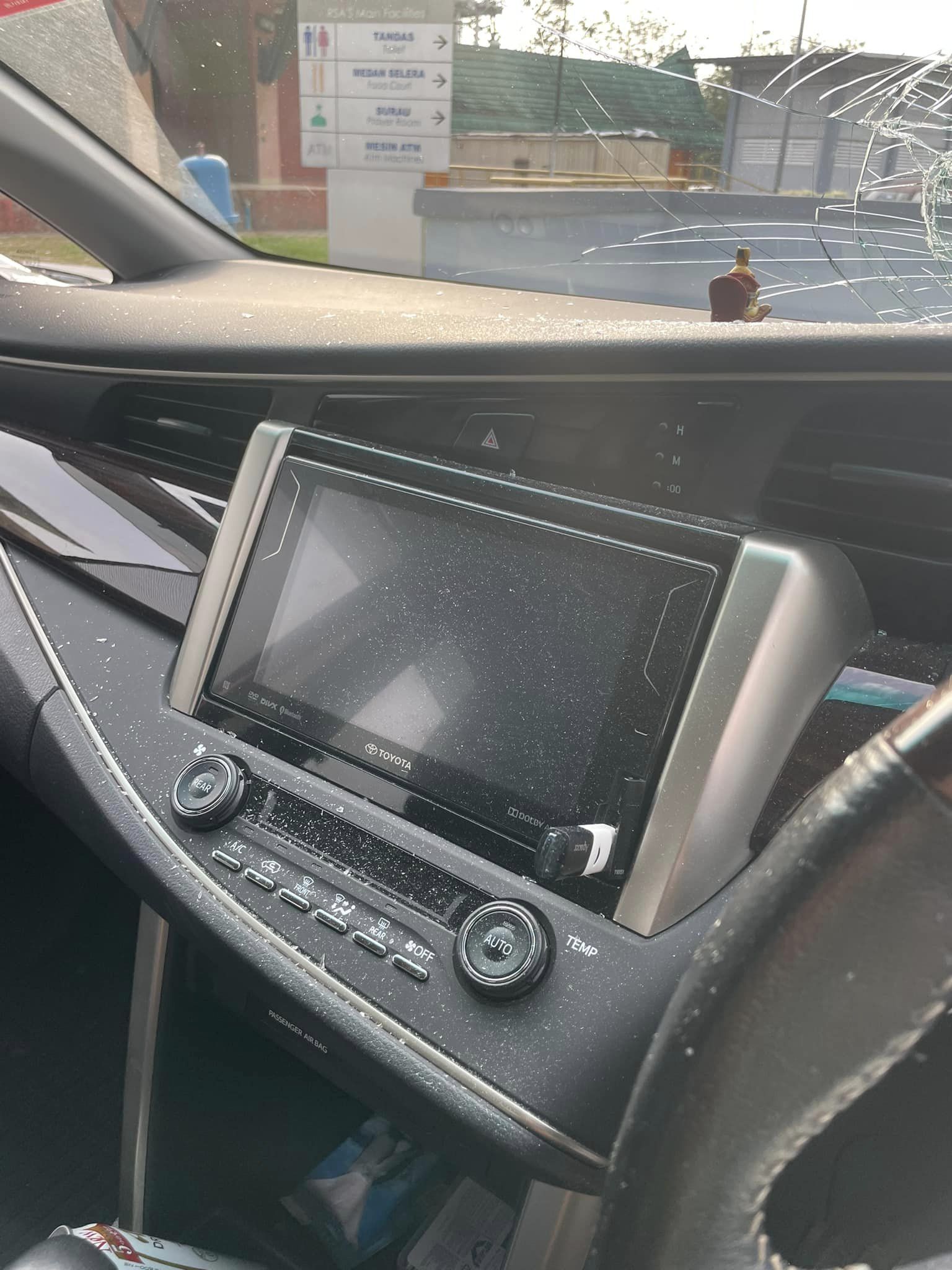 最狼狈的是,他开车往吉隆坡途中,竟遇上下雨,还好水扫还能操作,只是雨水从裂缝渗入车里,只能用纸巾暂时堵住,还好雨水约30分钟停了。