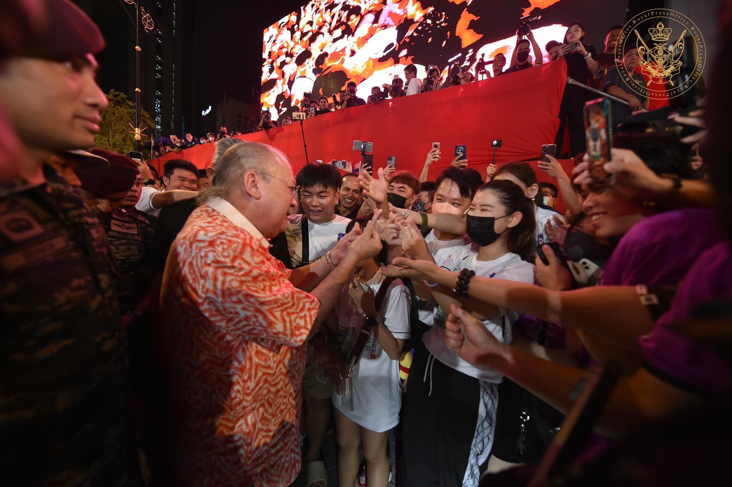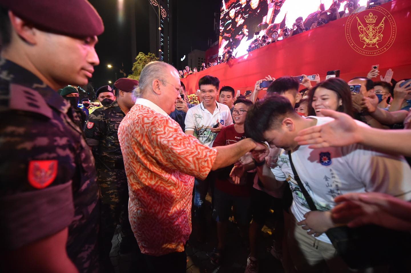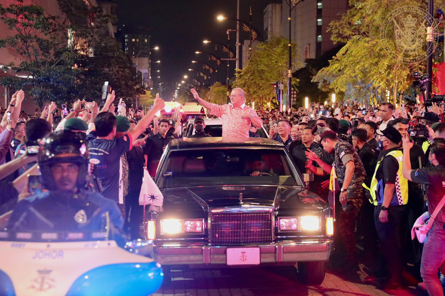 陛下在晚上约8时40分,乘着座驾抵达位于新山黄亚福街的恭迎台,并于晚上10时离开会场。