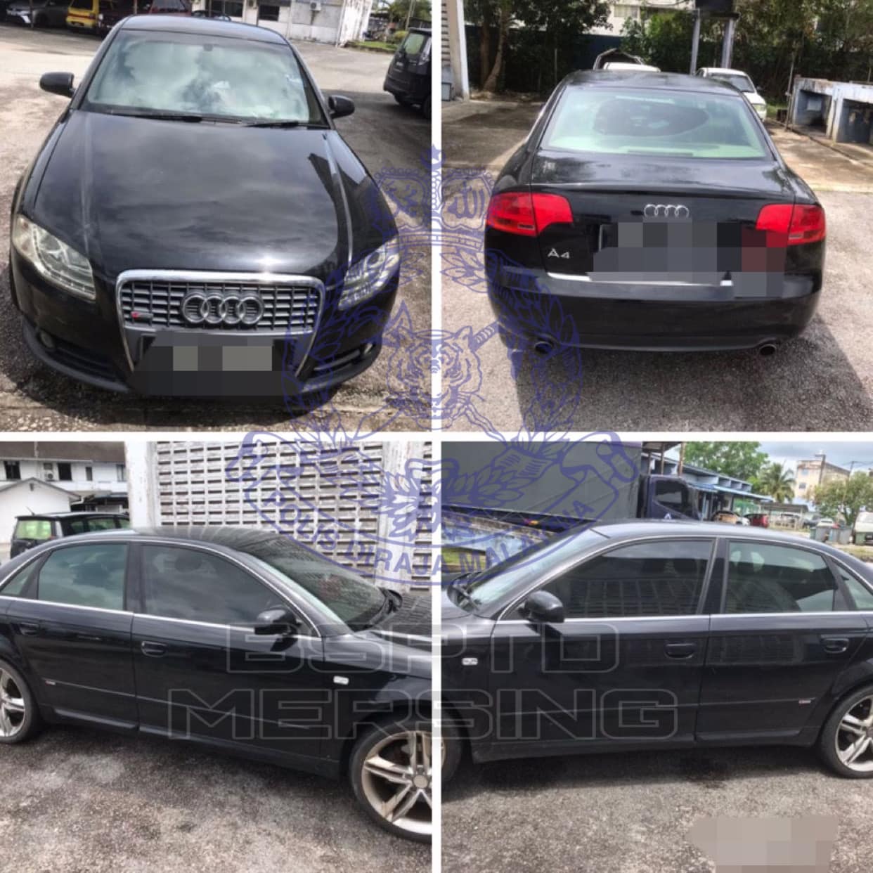 丰盛港交通执法与调组在文告中指出,昨日上午约11时,警员在Samudera花园的Sri Mersing 路,发现有关奥迪轿车。